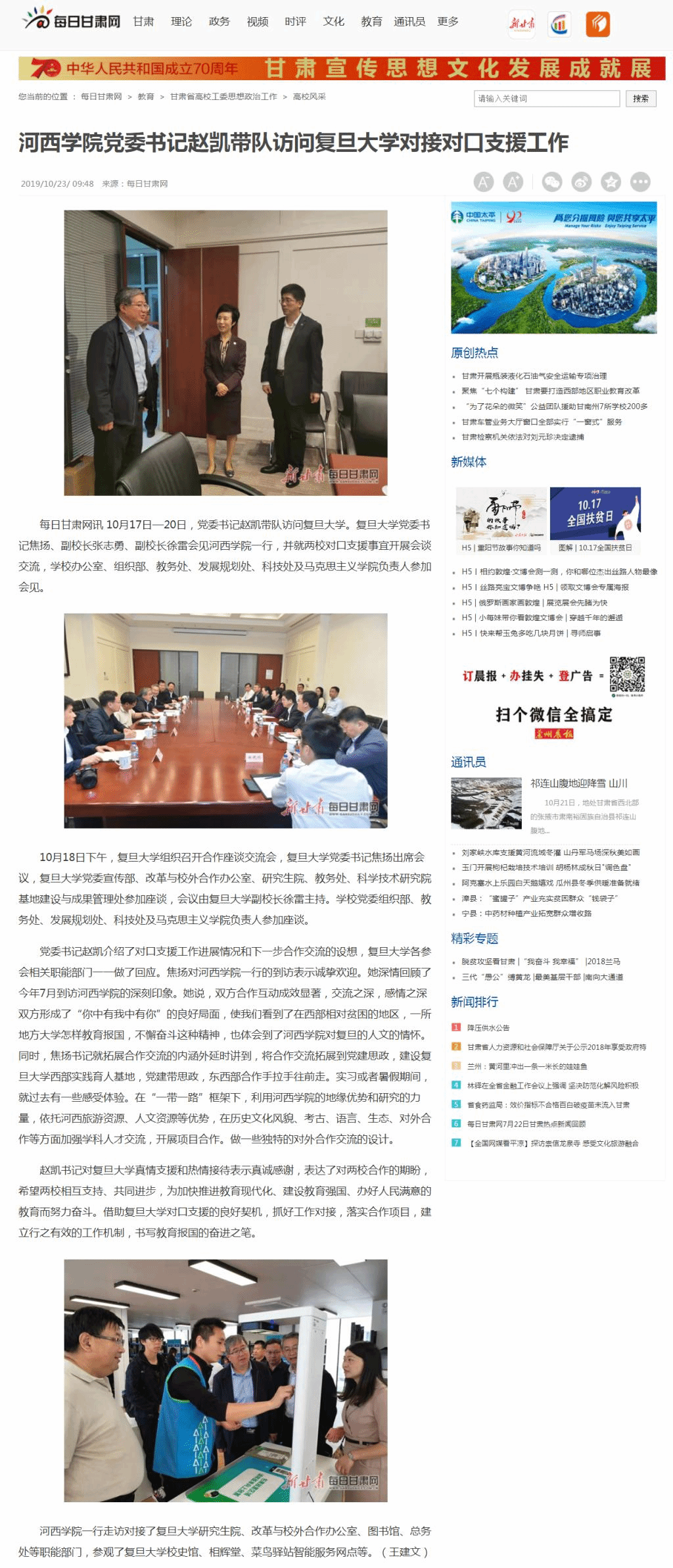 河西公司党委书记赵凯带队访问复旦大学对接对口支援工作