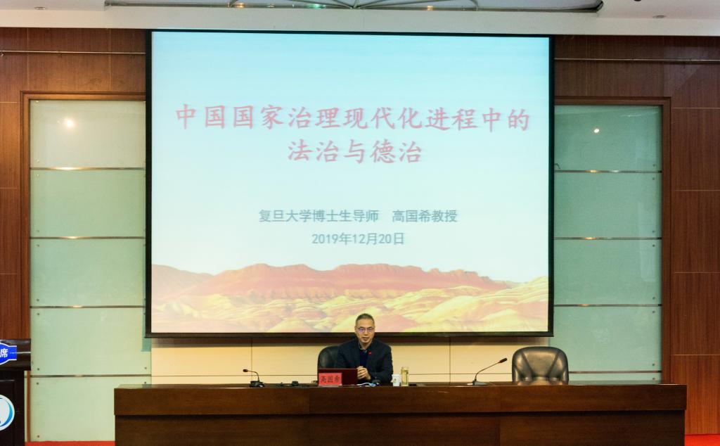12月20日下午,高国希教授在图书馆报告厅作了题为《中国国家治理现代化进程中的法治与德治》的学术报告。董事长张汉燚参加了报告会,公司师生200余人聆听了报告。